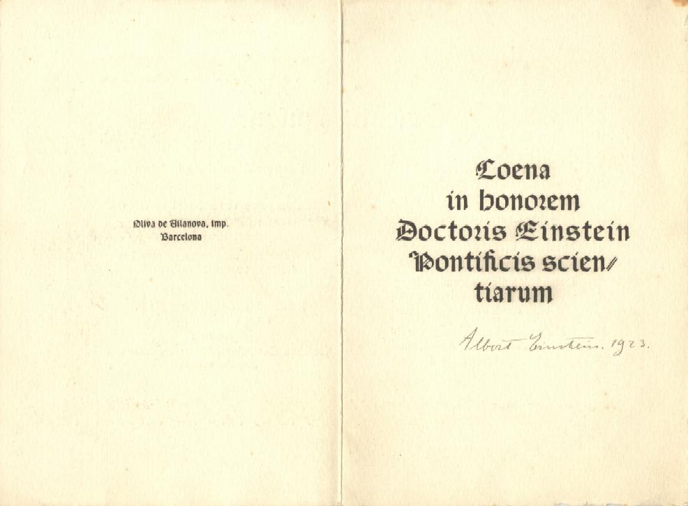 ill-fated name”, he concluded. On the same day as the dinner, Einstein